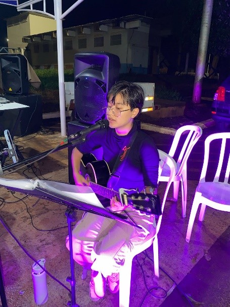 A trilha sonora da noite ficou por conta da talentosa Julia Nakata, aluna do curso de Engenharia Química, que encantou a todos com sua voz e um repertório cheio de sucessos. Em seguida, o karaokê garantiu a diversão dos mais animados, criando momentos espontâneos de alegria coletiva.