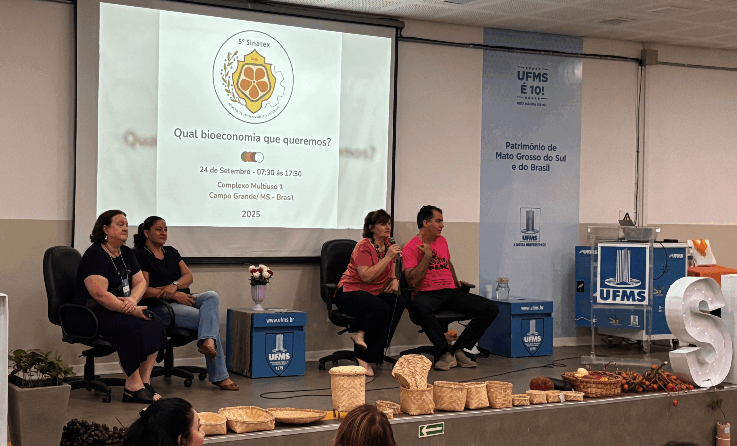 Um dos grandes destaques do evento foi a Feira da Sociobiodiversidade, que encerrou as atividades em 24/09, das 13h às 18h, no Complexo Multiuso da UFMS. Integrada à programação e com o valioso apoio do Mercado Escola UFMS, a feira se consolidou como um grande momento de troca de saberes e de aproximação direta entre produtores e consumidores engajados na busca por alimentos saudáveis e sustentáveis.