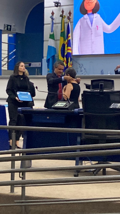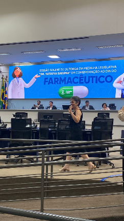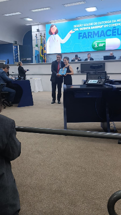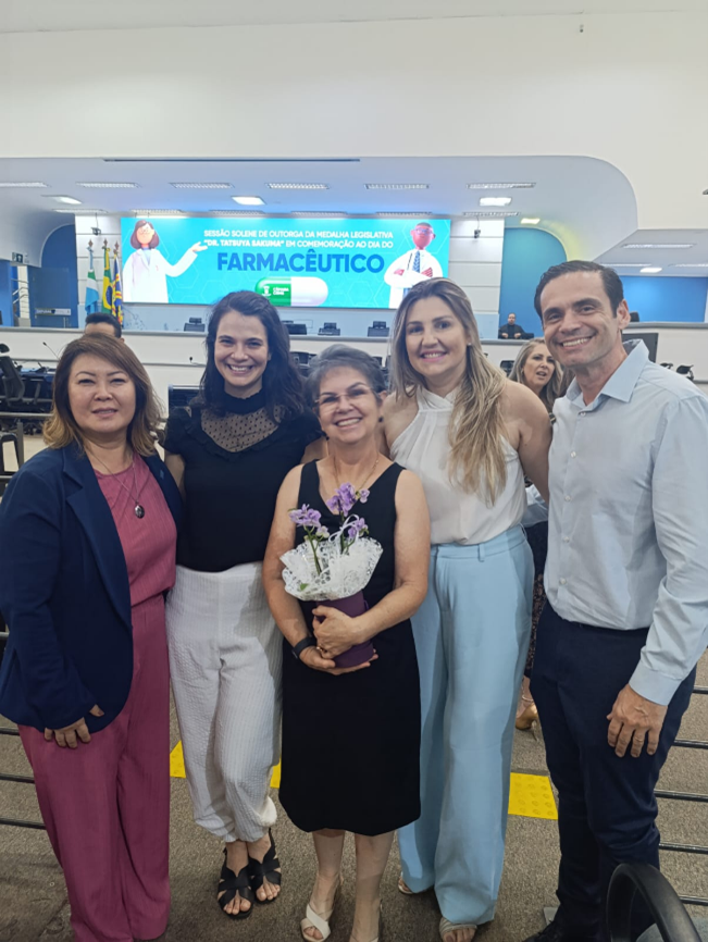 Esta homenagem ocorreu em uma Sessão Solene marcante, no dia 24 de setembro de 2025, às 19 horas, nas instalações da Câmara Municipal, localizada na Avenida Ricardo Brandão, nº 1.600. A solenidade, presidida pelo Vereador Dr. Jamal Mohamad Salem, integrou as comemorações do Dia do Farmacêutico, data em que diversos profissionais farmacêuticos que se destacam por sua atuação essencial no cuidado à saúde da população campo-grandense foram devidamente reconhecidos. Em um gesto de particular destaque, o Vereador Landmark Rios formalizou a homenagem à nossa querida Profa. Maria Tereza Ferreira.
