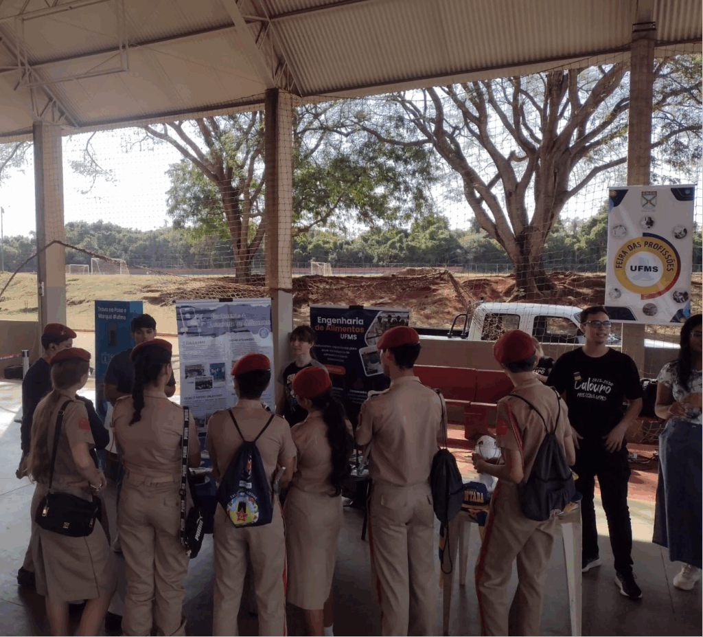 No dia 2 de agosto de 2025, o projeto de extensão Conhecendo a Engenharia de Alimentos (CEA) participou da feira das profissões realizada no Colégio Militar de Campo Grande. Durante o evento, os estudantes foram apresentados às principais áreas de atuação e responsabilidades dos engenheiros de alimentos, profissionais que atuam no desenvolvimento, controle e inovação de produtos alimentícios, assegurando a qualidade, a segurança dos alimentos e a sustentabilidade ao longo da cadeia produtiva.