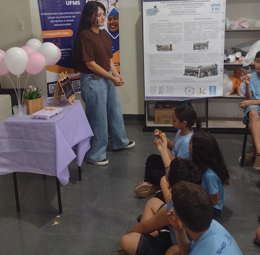Nos dias 22 e 23 de maio de 2025, o Projeto Conhecendo a Engenharia de Alimentos (CEA) marcou presença na ação de extensão “Vem para a UFMS”, iniciativa que visa aproximar a Universidade da comunidade externa e apresentar suas oportunidades para futuros estudantes.